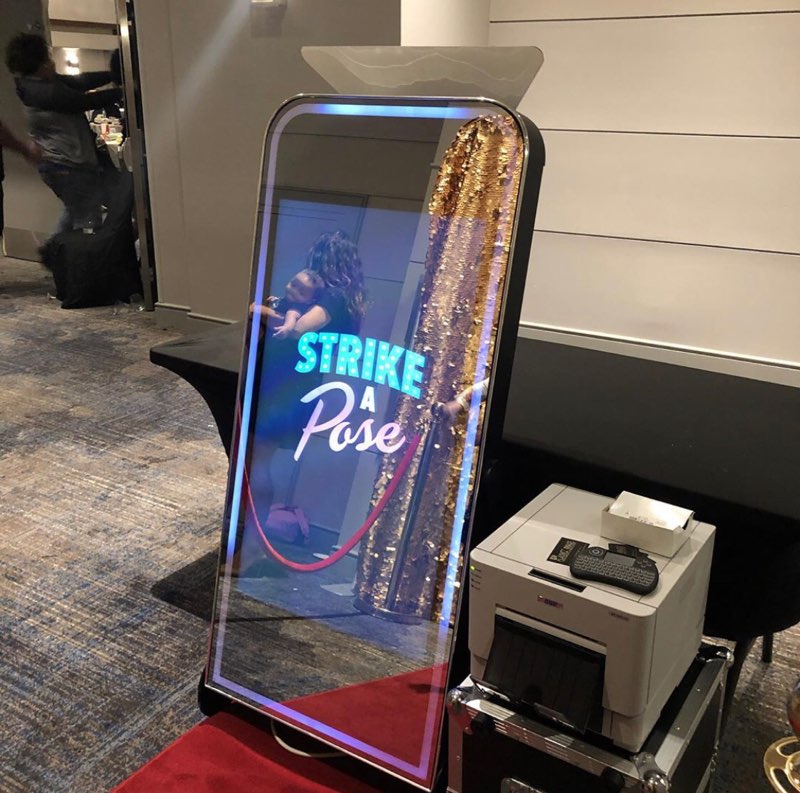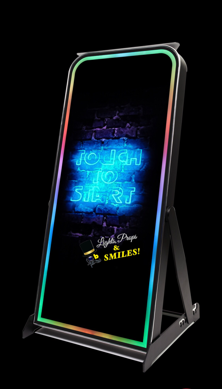 If entertainment is what you’re seeking for your event then our Mirror Booth is the booth for you! Our full-length mirror comes with a sleek design that is user-friendly, fully-customizable, and enjoyably interactive. Give your guests a fun, “selfie” experience they will always remember. As you approach the mirror, you’ll be greeted with touch-screen commands, colorful animations, and a friendly voice guidance that will surely make the booth the talk of the party. Bring enjoyment to your guests and book our mirror booth today! Be prepared to turn on the LIGHTS, grab a PROP, and SMILE.
